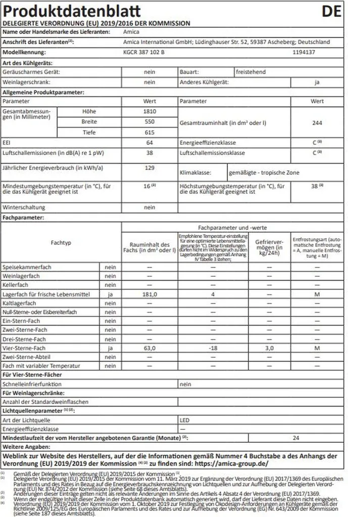 Amica KGCR 387 102 B Kühl-/ Gefrierkombination