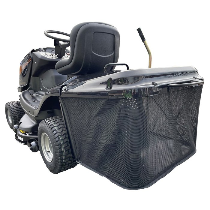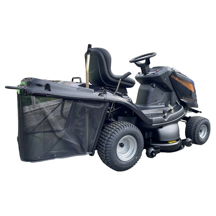 Der neu designte Grasfangkob mit 300L Fangkorbvolumen ermöglicht eine einfache Entleeren vom Fahrersitz sowie ein Komfortables Ein- und Aushängen.