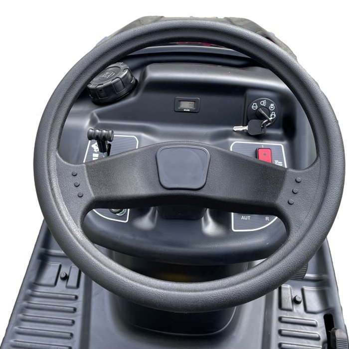 Der Mäher hat einen verstellbaren Sitz für optimalen Fahrkomfort.