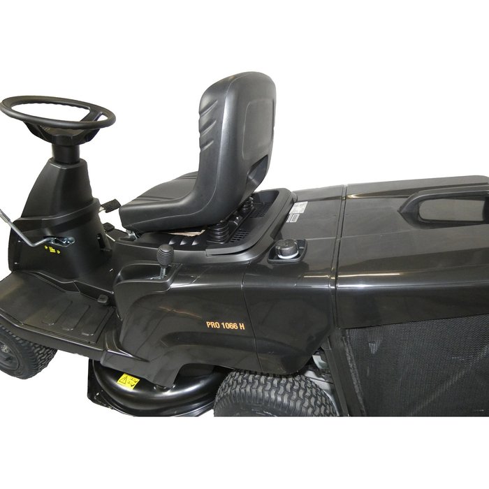 Der Black Edition Combi PRO 1066 H ist ein agiler, kompakter und einfach zu verwendender Aufsitzmäher, der von einem Einzylinder-Viertaktmotor mit 3,6 kW bei 2450 U/min. angetrieben wird.