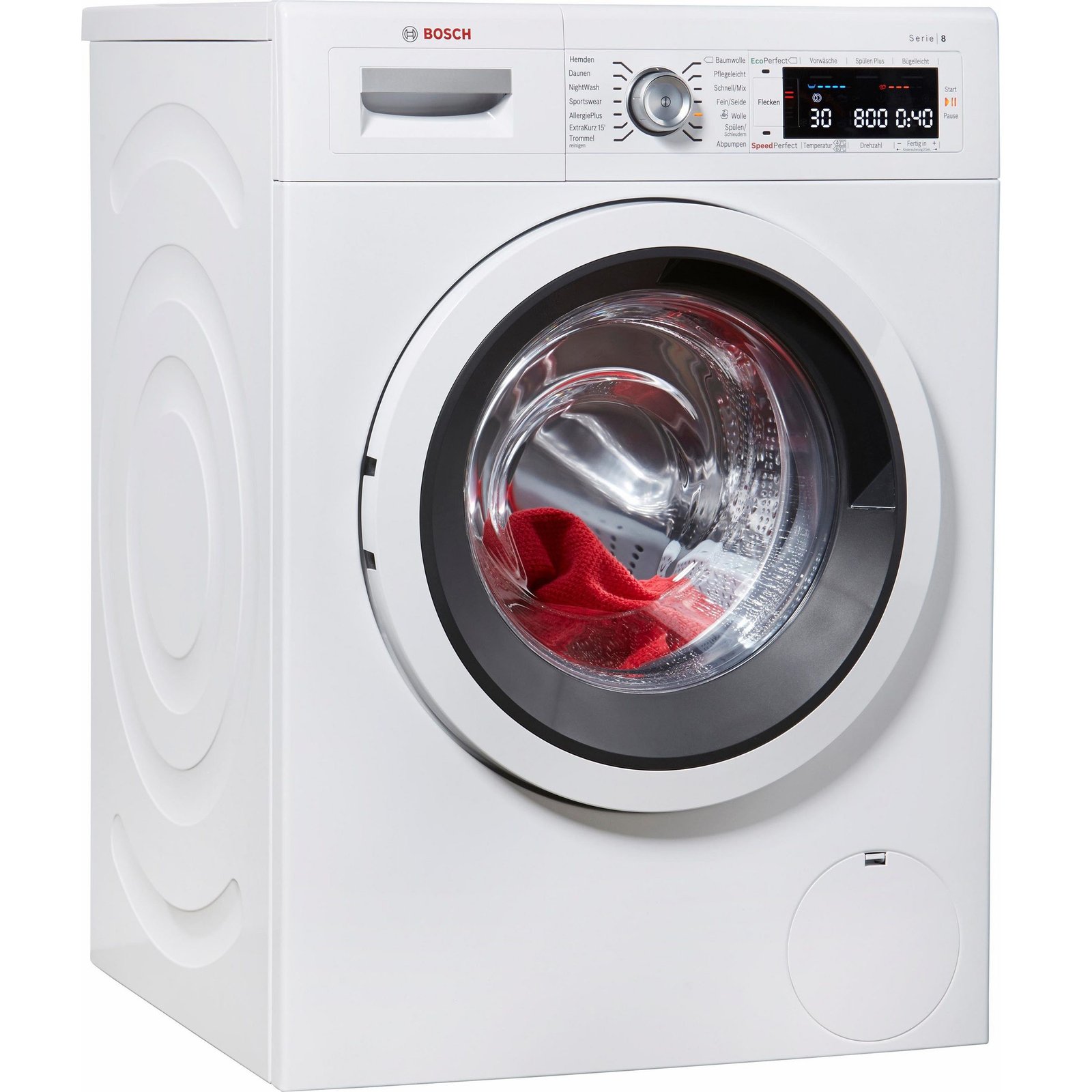 Zusatzprogramme : Automatik, Sportbekleidung, Handwaschprogramme für handwaschbare Wolltextilien, Eco Perfect, Decken, Leichtbügeln, Allergie plus, SpeedPerfect, Hygiene, Kurz, Schnell/Mix, Handwäsche, NightWash (Schnell/Mix extraleise), Hemden