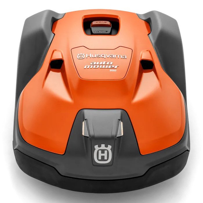 Geräteeinstellungen werden über die Automower Connect-App oder über die Husqvarna Fleet Services-App am Smartphone, Tablet oder PC geändert. Bedienfeld mit Status-LED-Anzeige und START/STOP-Funktion.