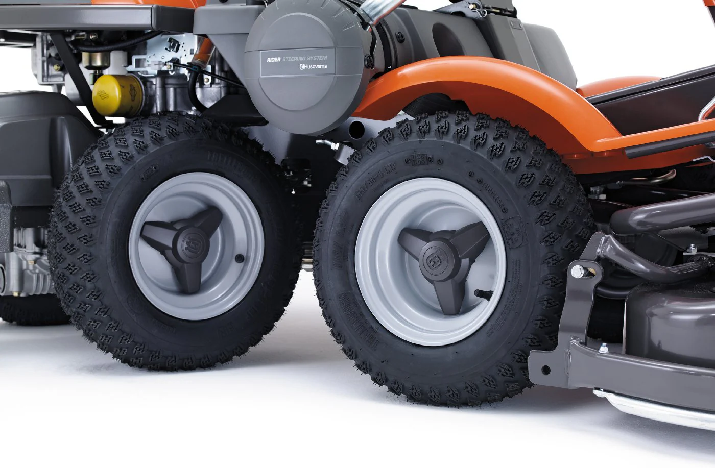 | Reifen mit Rasenprofil schonen den Rasen bei gleichzeitig guter Traktion | |