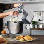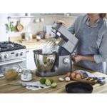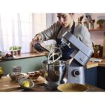 Mitgelieferte Rührelemente : 1x K-Haken (Edelstahl), 1x Ballonbesen (Edelstahl), 1x Knethaken (Edelstahl), 1x flexibles Rührelement (Kunststoff/Gummi), 1x Rührelement (Kunststoff)