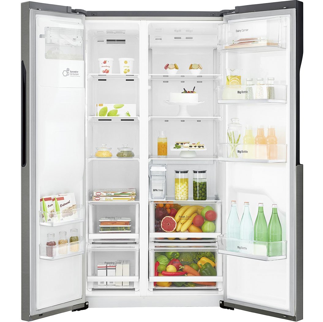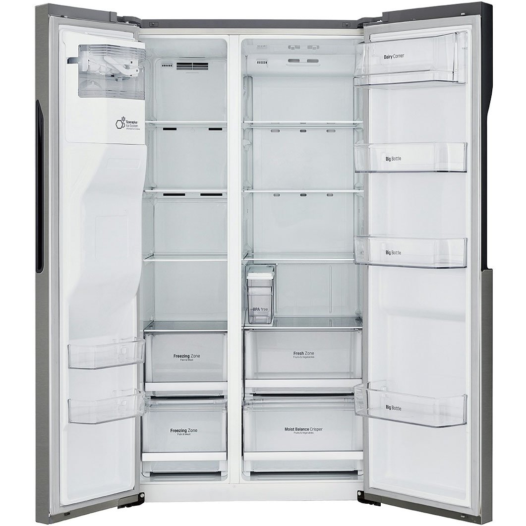 - Technische Ausstattung : LED Beleuchtung im Gefrier- und Kühlteil, Door Mounted Icemaker, Eis-, Crushed Ice- und Wasserspender, Moist Balance Crisper (optimaler Feuchtigkeitsgehalt), Kindersicherung, Schnellgefrieren (zuschaltbare Schnellkühlung für den gesamten Gefrierteil)
