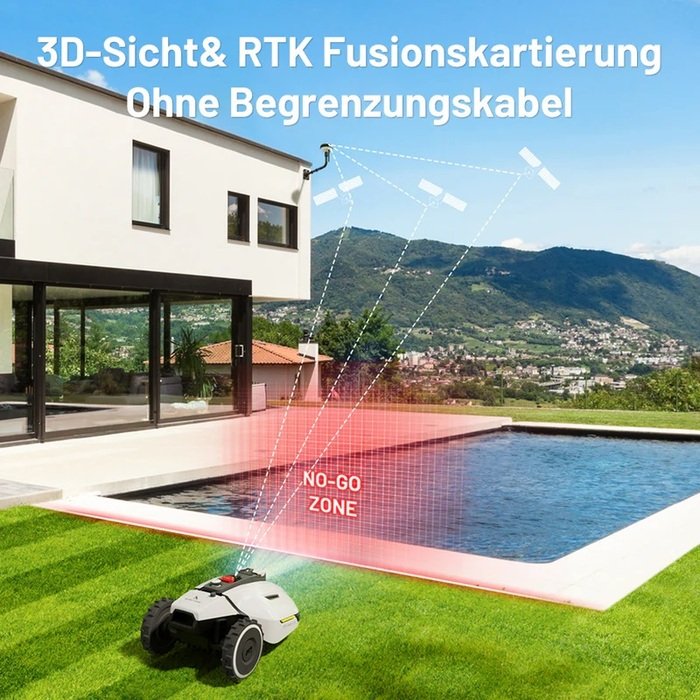 Die 3D-Vision-Navigation ermöglicht präzises Mähen auch unter Bäumen, während das Multi-Zonen-Management eine individuelle Pflege verschiedener Gartenbereiche erlaubt. Zusätzlich bietet der YUKA 1500 eine fortschrittliche Hindernisvermeidung und GPS-Ortung, was ihn zu einem der fortschrittlichsten Roboter-Rasenmäher auf dem Markt macht.