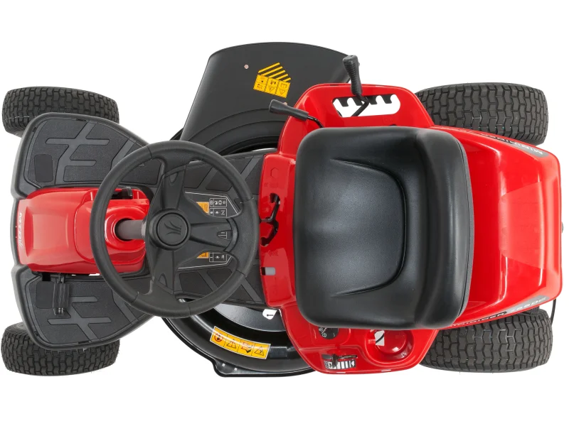 Der Aufsitzmäher wird über einen Elektrostarter angelassen und ist mit einem 1 Zylinder MTD Motor mit 382 cm³ ausgestattet. Das Transmatic-Getriebe überzeugt mit einer angenehmen Bedienung. Wählen Sie lediglich die Fahrtrichtung und den Gang und der Traktor beschleunigt automatisch. Dabei können Sie zwischen 6 Vor- und Rückwärtsgängen wählen. Zum Anhalten oder Verlangsamen drücken Sie einfach das Bremspedal.