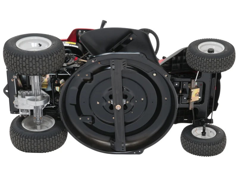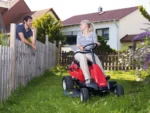 Der Durchstiegsrahmen bietet ein bequemes Auf- und Absteigen. Die großen und komfortablen Räder sind luftbereift und sorgen so für ein angenehmes Fahrgefühl. Insgesamt überzeugt der Rasenmäher mit einer einfachen Bedienung und einem ansprechenden Design.