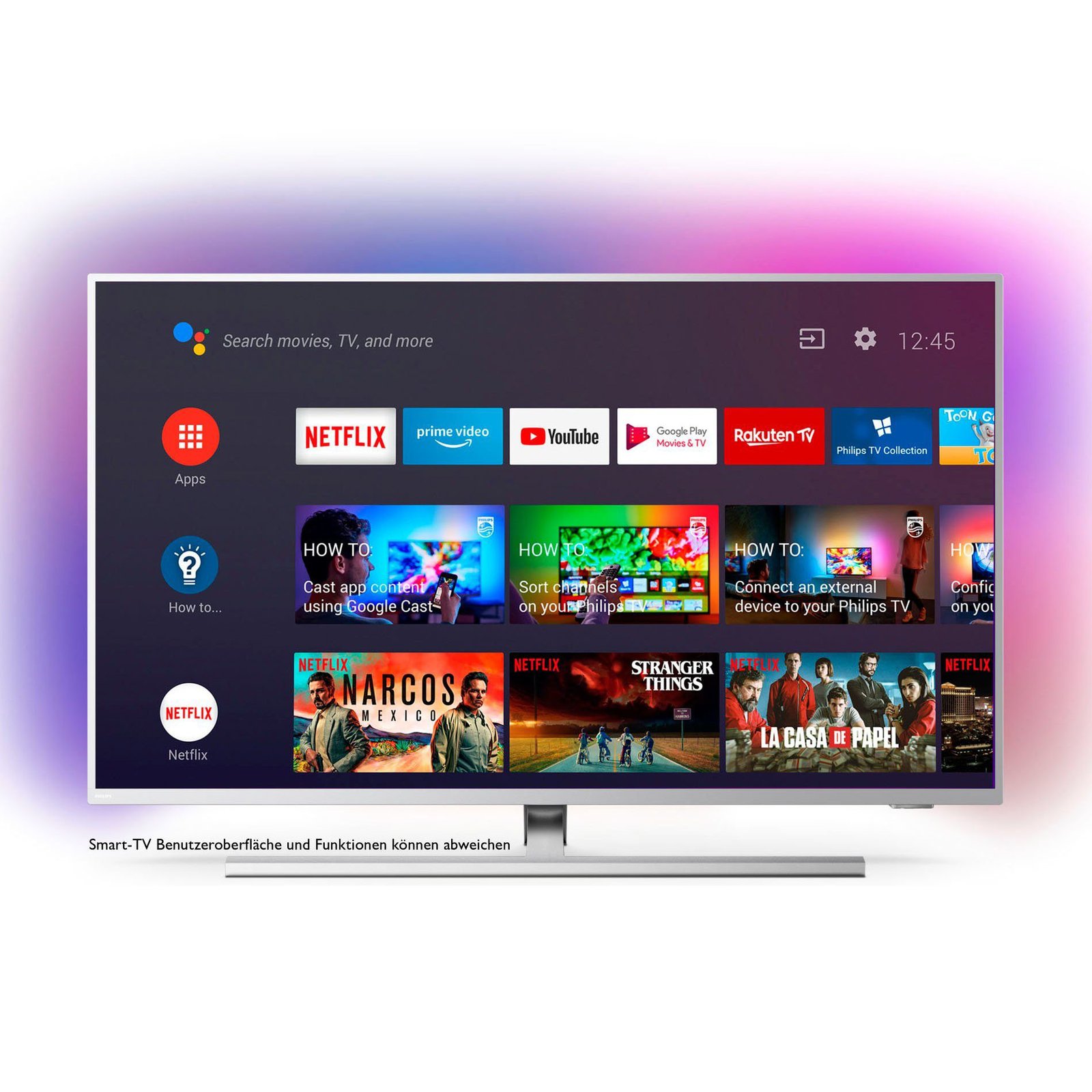 Verfügbare Apps : YouTube, Netflix, Google Play Movies, Google Play Music, Google-Suche, Amazon Video, BBC iPlayer