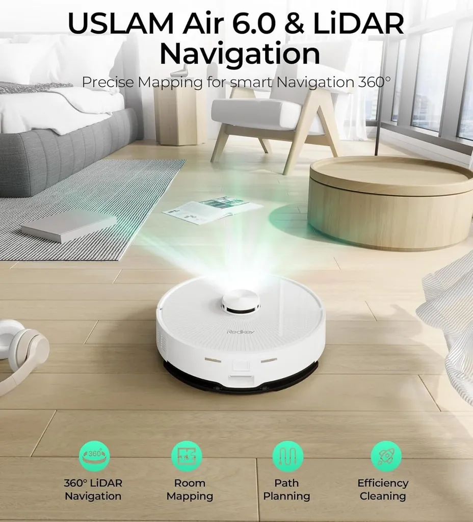 【Intelligente Navigation und Hindernisvermeidung】: Die fortschrittlichen Sensoren ermöglichen es dem Roboter, weiße Wände, Treppen und Hindernisse zu erkennen und zu vermeiden. Der Redkey R10 Roboter-Staubsauger ist mit einer intelligenten 360°-Laser-Navigation ausgestattet, die in nur 10-15 Minuten eine präzise Karte erstellen kann, um bis zu verschiedene Karten zu erstellen und spezifische Reinigungseinstellungen für jeden Stock festzulegen. Es ist auch möglich, virtuelle Wände einzurichten, um unerwünschte Bereiche zu vermeiden und unnötige Reinigungen zu verhindern.