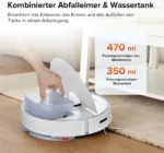 - Kombinierter Staubbehälter und Wassertank – Die Kombination von Staubbehälter und Wassertank in einem Gerät erhöht die Kapazität beider Behälter und erleichtert das Entleeren des Behälters und das Nachfüllen des Tanks in einem Arbeitsgang.
