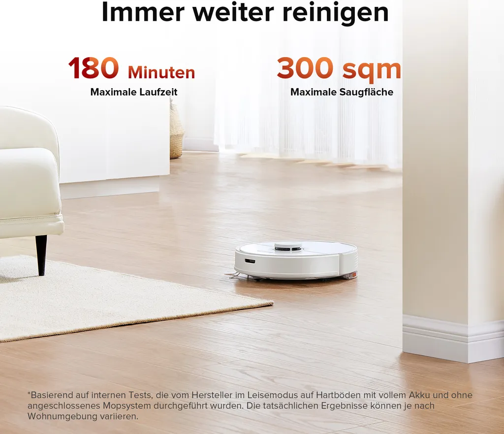 - Reinigen ohne Unterbrechung – Angetrieben von einem großen 5200 mAh Li-Ionen-Akku kann der Q7 Max+ mit einer einzigen Ladung bis zu 3 Stunden lang ununterbrochen reinigen. Die Reichweite reicht locker für die meisten Haushalte aus.