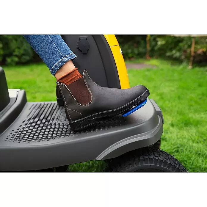 Der integrierte Wasseranschluss ermöglicht eine leichte Reinigung nach getaner Arbeit. Den Rasentraktor erhalten Sie teilmontiert.