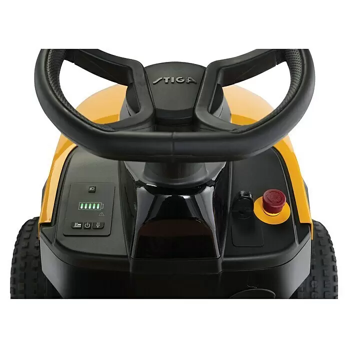 Der Akku-Rasentraktor Estate 384e bietet genau die richtige Mischung aus Leistung und Vergnügen. Dieser robuste Aufsitzrasenmäher wird von einem leistungsstarken Stiga Lithium-Ionen-Akku (30 Ah) angetrieben, der von Stiga in Italien entwickelt und getestet wurde.