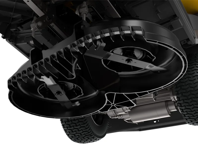 Das Mähwerk kann bequem über die elektromagnetische Kupplung zugeschaltet werden. Die zwei gegenläufig drehenden Klingen arbeiten durchdacht mit dem neu gestalteten Mähdeck zusammen und verbessern so die Schnitteigenschaften. Über den Smart Cutting Modus steht Ihnen für jede Aufgabe die richtige Klingendrehzahl zur Verfügung. Die Schnittbreite beträgt dabei 72 cm und kann in 6 Stufen von 30 mm – 80 mm in der Höhe verstellt werden.