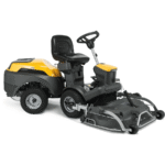 Der mit einem 432-cm³-Einzylindermotor ST 450 von STIGA ausgestattete Frontmäher Park 500 bietet dir zuverlässiges, bequemes Fahrvergnügen beim Mähen. Die 50:50-Knickservolenkung des Frontmähers und die innovative Chassis-Bauweise erleichtern das Lenken und Umfahren um Bäume und Beete. Das frontmontierte Mähwerk des Park 500 gibt dir freie Sicht nach vorn, ein leichtes Erreichen von Ecken und Winkeln und wunderbare Ergebnisse an den Rasenkanten. Und da es sich um ein Schwebemähwerk handelt, gleitet es auch geschmeidig über unebene Untergründe. Mit seinem QuickFlip-Mechanismus kannst du das Mähwerk innerhalb von Sekunden werkzeuglos in eine Reinigungsposition bringen. Das Fahren dieses Frontmähers ist so einfach dank seines seitlich angebrachten Armaturenbretts mit praktischen Steuerungen – einschließlich elektronischer Einstellung der Schnitthöhe. Damit du es auch wirklich bequem hast, ist der Sitz des Park 500 mit einer unterstützenden Rückenlehne ausgestattet und bietet jede Menge Beinfreiheit zum Auf- und Absteigen. Lehn dich einfach zurück, entspanne dich und genieße die Fahrt. Anhängerkupplung inklusive.
