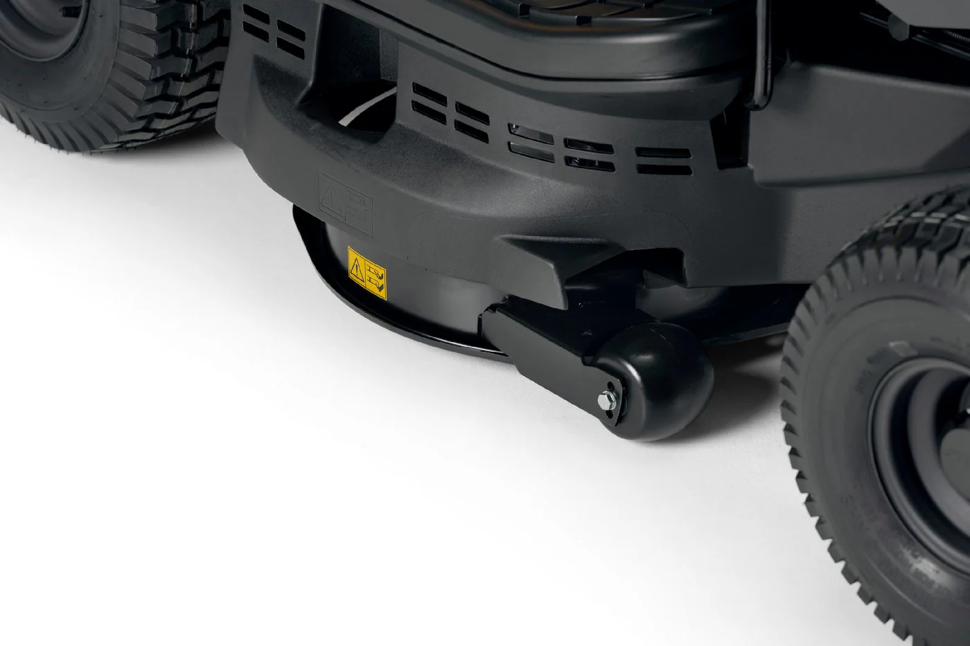 | Die serienmäßig im Lieferumfang enthaltene robuste Stoßstange schützt verlässlich die Motorhaube des Rasentraktors | |
