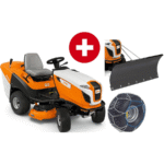Der STIHL Rasentraktor RT 5097 mit 95 cm Schnittbreite erweist sich bei der Pflege umfangreicher Flächen als wahrer Allrounder. Die Windflügelmesser und das STIHL Fangleitsystem gewährleisten einen sehr guten Transport des Schnittguts in den Fangkorb. Unter Verwendung von Zubehör-Kits kann die Maschine auch zur Grasablage oder zum Mulchen umgerüstet werden. Für den Antrieb sorgt der verbaute STIHL EVC 4000 Benzinmotor. Mit dem STIHL spezifischem 1-Pedal Fahrantrieb läßt sich das Gerät komfortabel Manövrieren und Rangieren. Alle Bedienungsfunktionen sind ergonomisch um den werkzeuglos verstellbaren Fahrersitz herum angeordnet. Der Anwender genießt dabei viel Beinfreiheit. Der 250 Liter fassende Grasfangkorb läßt sich bequem vom Fahrersitz aus per Säbelgriff abkippen und entleeren. Mit der integrierten Anhängevorrichtung läßt sich ein Transportanhänger ziehen oder sonstiges Zubehör anbauen.