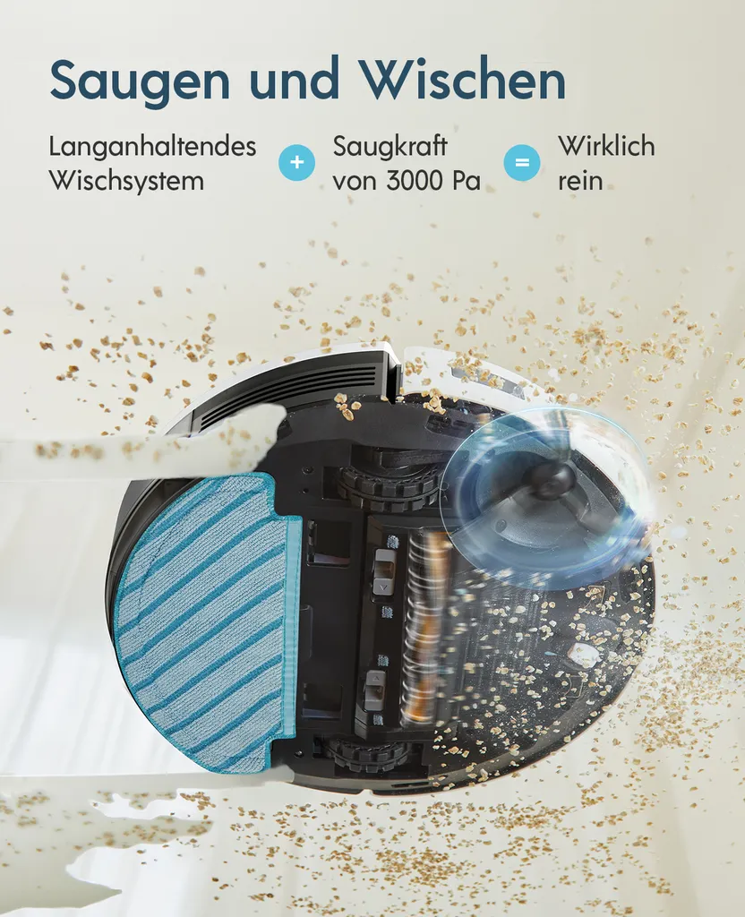 - [Sofort makellos sauber] Der yeedi vac 2 Saugrobtoer ermöglicht gleichzeitiges Saugen und Wischen. Egal ob hartnäckige Verschmutzungen auf Holz-, Fliesen- oder Laminatböden oder Schmutz und Staub auf Teppichen und Hartböden, unser Saugroboter entfernt sie zuverlässig.